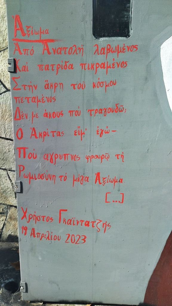 Από Ανατολή λαβωμένος Και πατρίδα πικραμένος Στην άκρη του κόσμου πεταμένος Δεν με ακούς που τραγουδώ; Ο Ακρίτας είμ’ εγώ — Που άγρυπνος φρουρώ τη Ρωμιοσύνη το μέγα Αξίωμα […]
